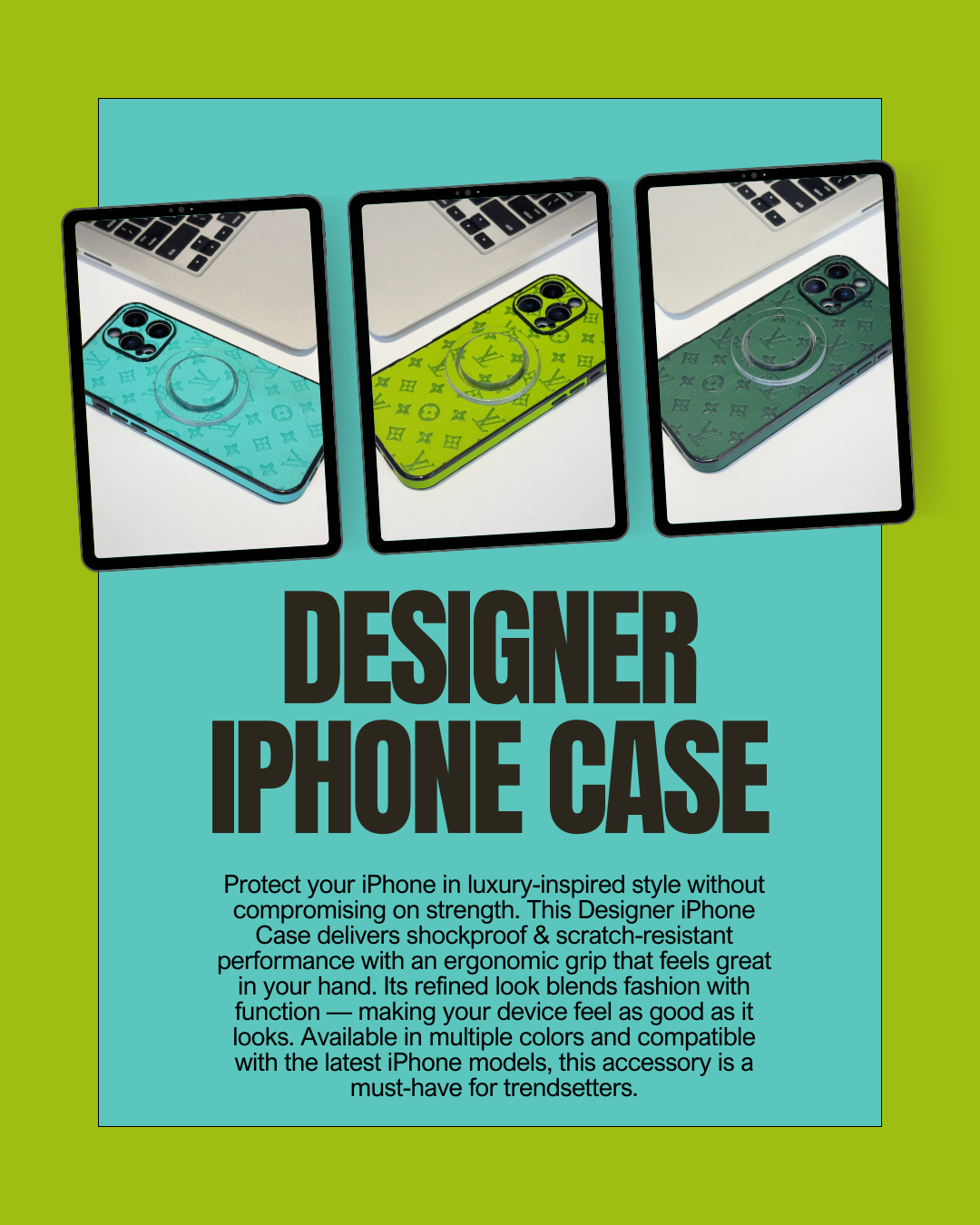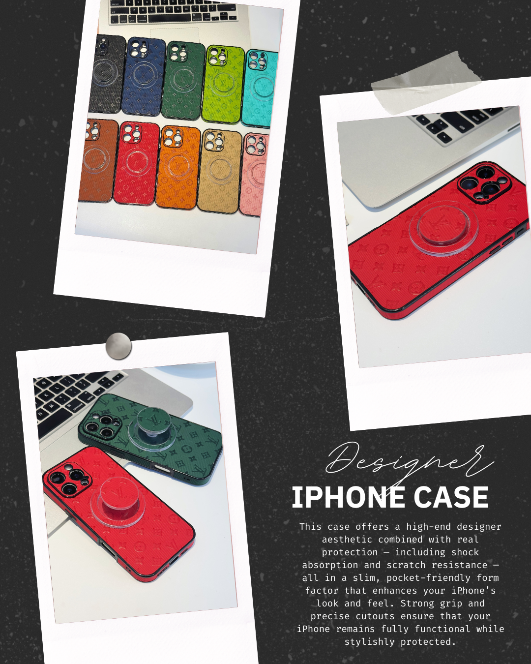 Elevate your style with this Designer iPhone Case — a sleek accessory that blends premium fashion aesthetics with reliable everyday protection. Crafted to fit your iPhone perfectly, this case highlights chic designer-inspired elements while safeguarding your device against scratches, bumps, and daily wear. Its slim profile ensures comfort in hand and pocket without sacrificing durability, making it the ideal companion for both everyday use and special occasions.